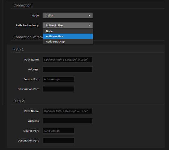 Starting with v1.4, you can also configure Active-Backup from the Web Interface (previously only via the CLI). This update allows an SRT listener to accept one non-redundant connection on any of the paths configured, or two redundant connections.