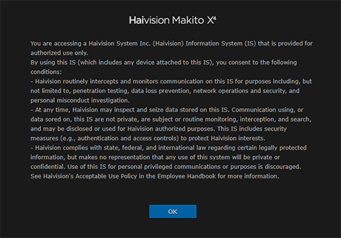 Please refer to the Important Notice (postcard shipped with the appliance or available from the Download Center on the Haivision Support Portal) for the default sign-in credentials.
