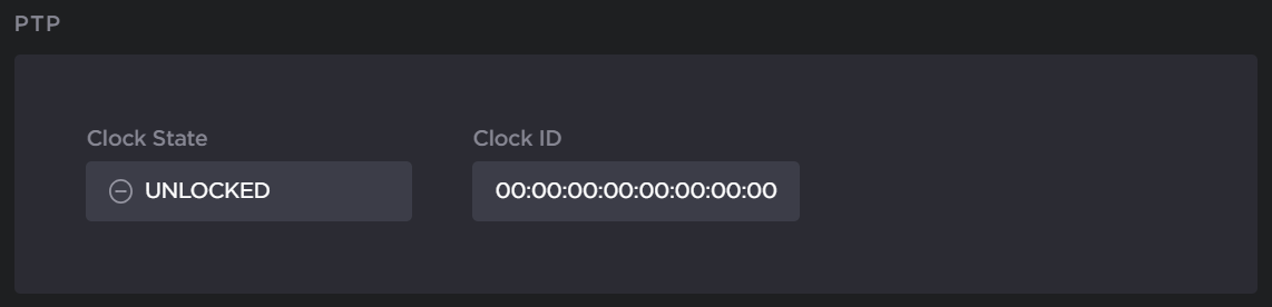 (ST 2110 input only) You can check the Clock State LED and ID. A "LOCKED" state indicates that the encoder is locked to the PTP signal. The Clock ID is the ID of the PTP grandmaster (for reference and troubleshooting).
