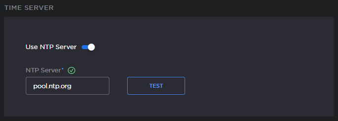 Once the test is complete, a 'Valid NTP Server' message will pop up, and a green checkmark will appear.