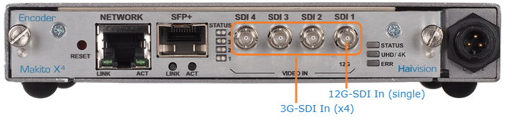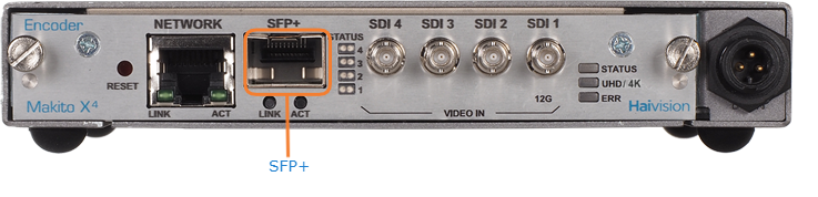 Starting v1.4, the Makito X4 Encoder with an MSA compliant 10Gbps Ethernet NIC installed in the SFP+ port can ingest and encode SMPTE ST 2110 compliant content containing active video, audio and ancillary metadata.
