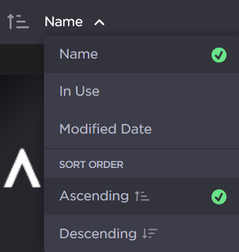 By Name, logos In Use, or Modified Date; in Ascending or Descending order, by clicking the sort logos drop-down.