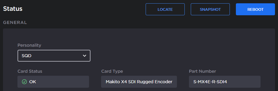 Set the encoder to 'SQD' Personality. You can configure the Personality either from the Web Interface on the System page (see Managing System Status Information) or via the personality CLI command (see personality).