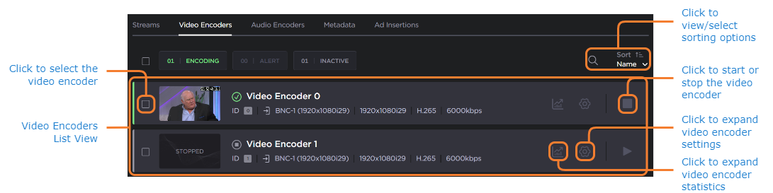 Click Streaming on the sidebar, and select the Video Encoders tab. The Video Encoders List View opens.