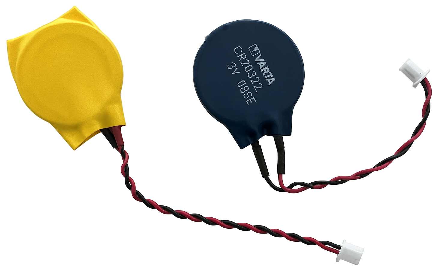 Your Makito X4 may have an older version of the battery assembly, identified by a blue or yellow plastic coating (as shown in the pictures below). It is recommended to replace this battery with Haivision battery assembly P/N: 084P089-900G. See Replacing a Previous Gen RTC Battery below.