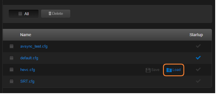 Configuration settings saved as the "startup" preset will continue to be used after a reboot, or when the unit is turned off and on. You can also direct the system to apply a preset to restore settings when the system startup process performs the configuration autoload.