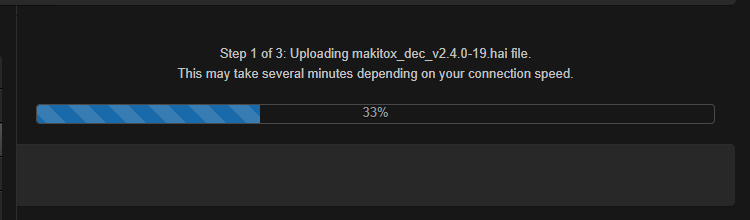 Wait for the file to be uploaded and verified and the file system synced. Remain on this page and do not click anything else in the Makito X Web interface during the upload.