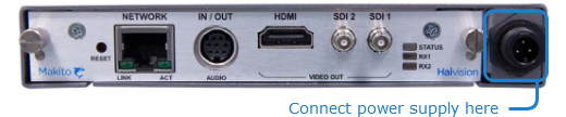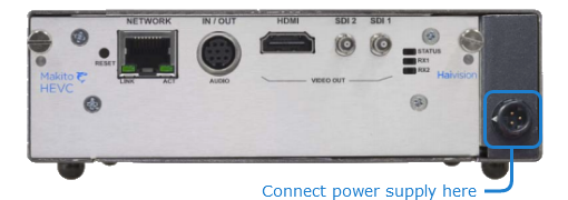 To prevent damage to the Makito X and/or power supply, be sure to connect the power supply to the chassis first and then to the AC source.