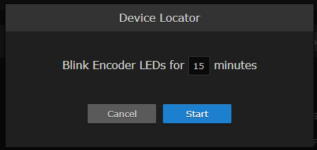 To initiate blinking of the status and TX leds, click Locate. On the Device Locator dialog, adjust the time allowed to blink the encoder LEDs and click Start.