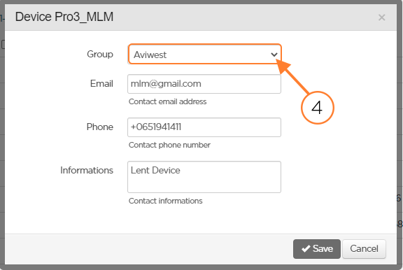 The administrator, and users with the "Field unit management" permission who can manage several groups, can change the group of any offline or online field unit.