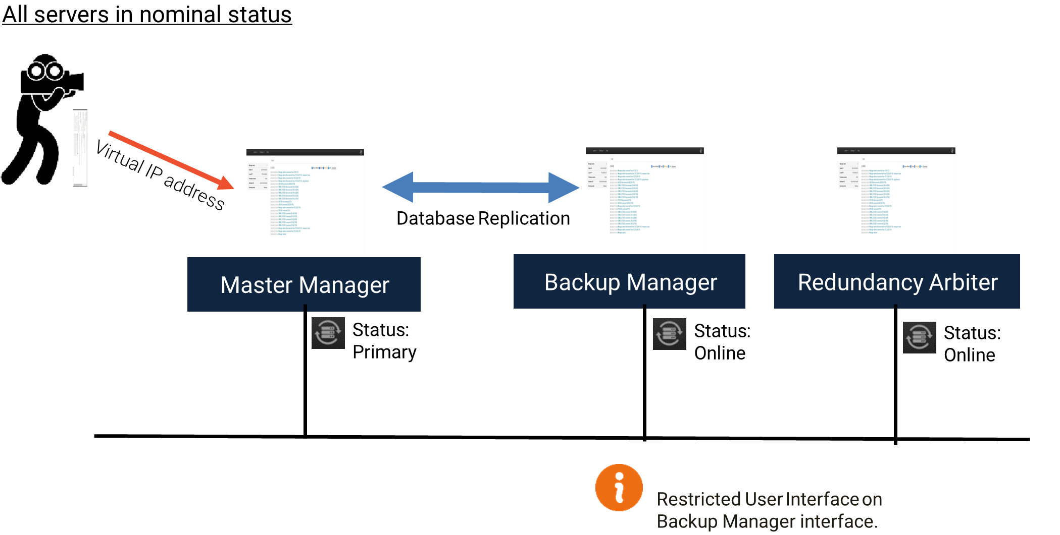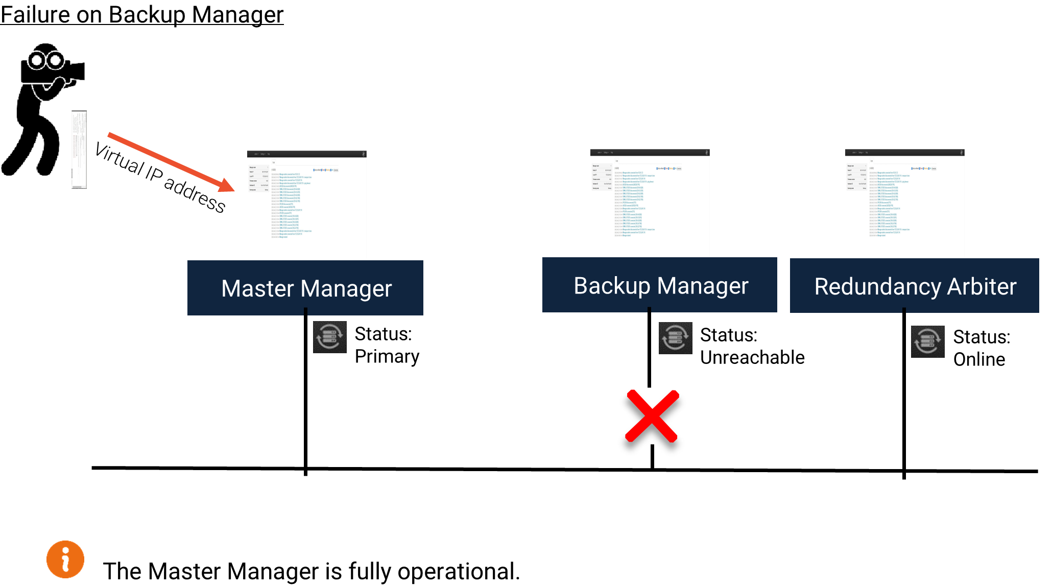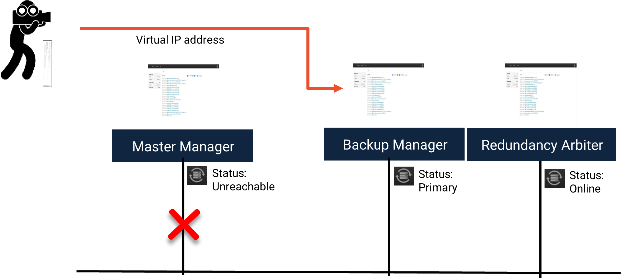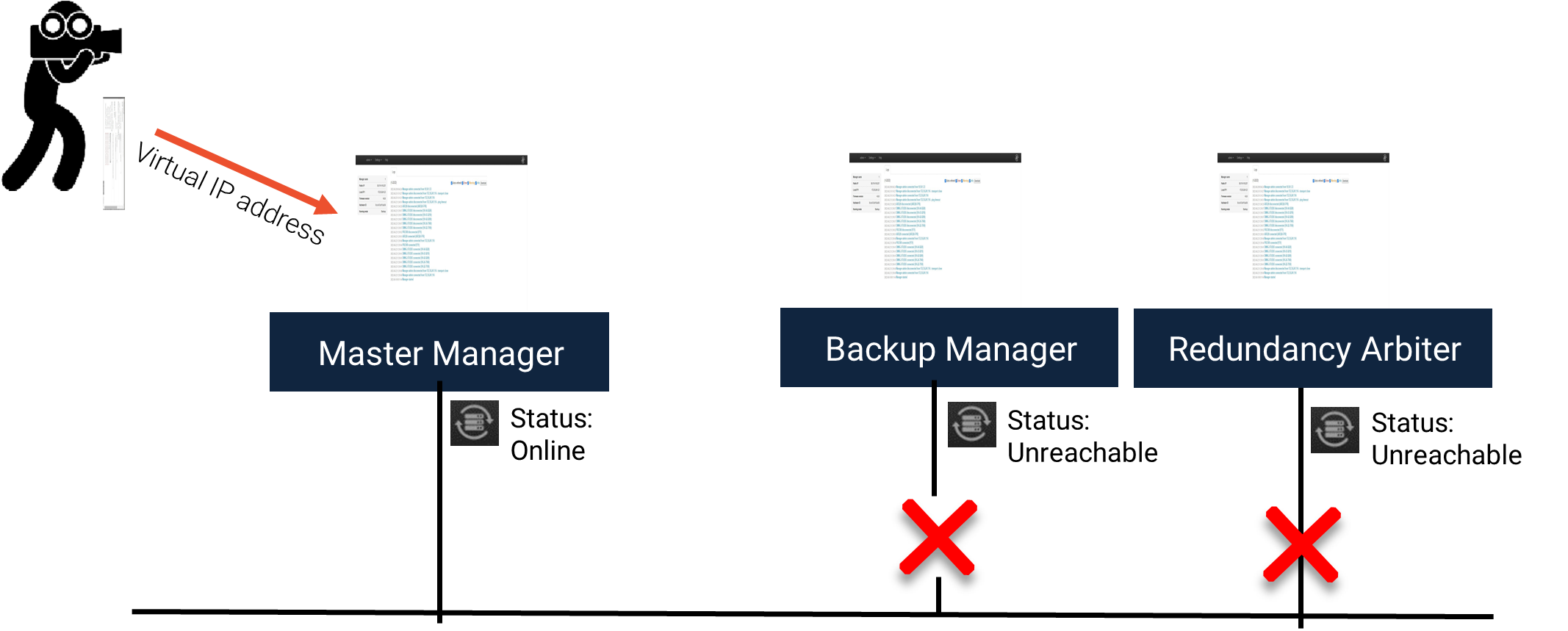 Online | Status indicating that communication is impossible with both Backup Manager and Redundancy Arbiter. | |