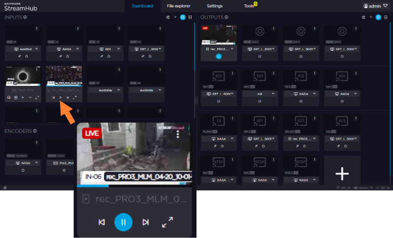 You can connect this playback input to any Physical Output, IP Output, or Encoder, or use it as an input for the Multi-View.