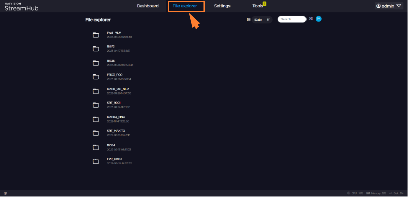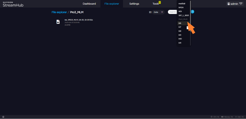 If the license applied on the StreamHub includes the Playback option, you can play out MP4, MP4F, and MOV files forwarded by field units, or TS files recorded by the StreamHub in order to stream them out through one or several outputs.