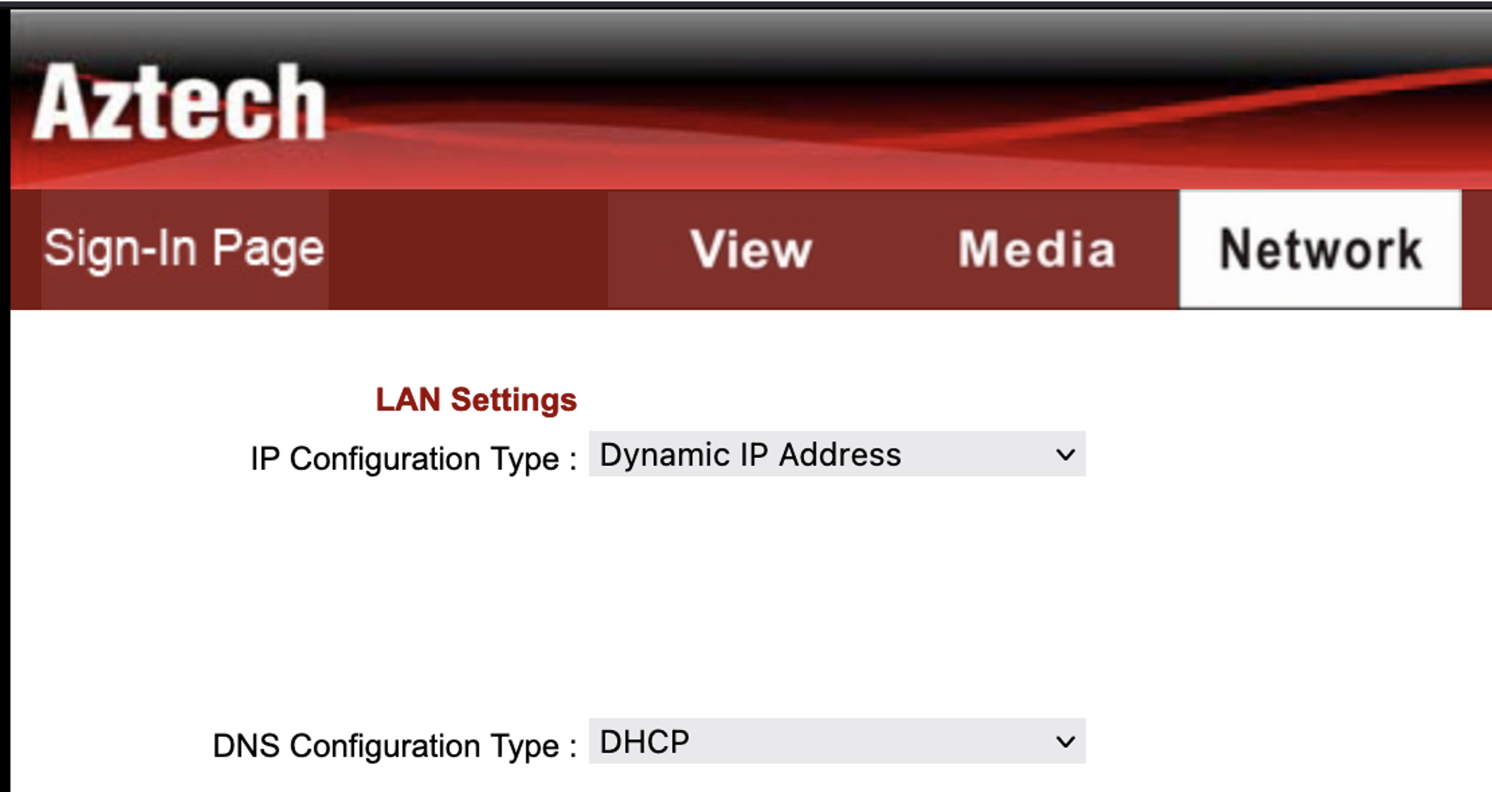 Configure the PTZ camera in DHCP client mode (see example below) so that it will be able to automatically obtain an IP address from the transmitter via DHCP: