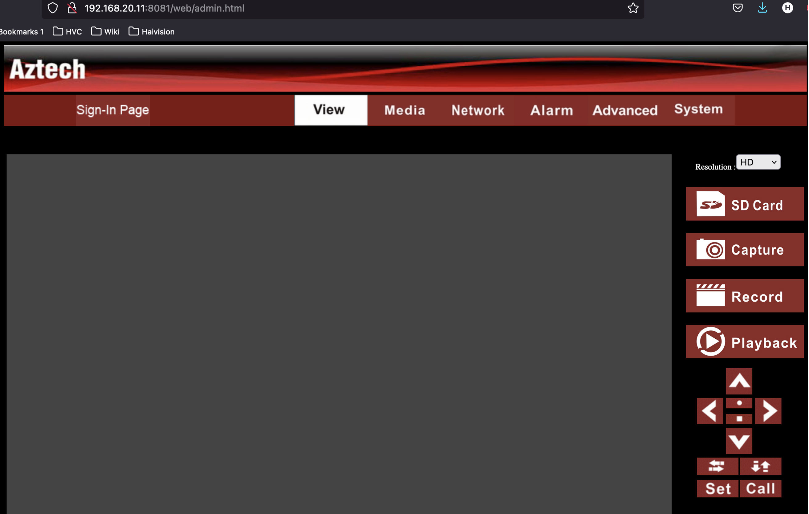 Verify that the central management PC can gain access to the PTZ control interface (varies by vendor). The following example shows the web interface of a typical PTZ camera controller on the remote site accessed via the central management PC: