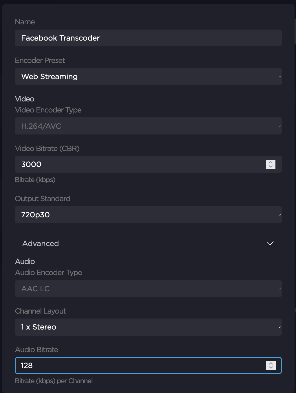 Method B: From the Encoder drop down, select the input desired to be transcoded, and then select the Encoder in the output drop down to output to FaceBook Live.