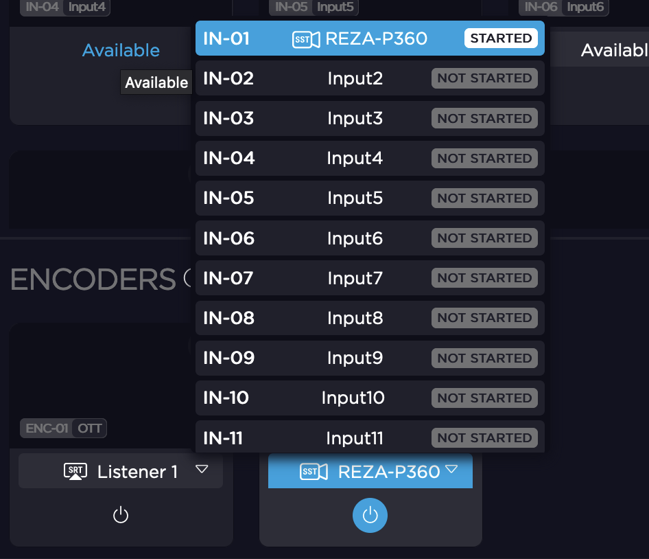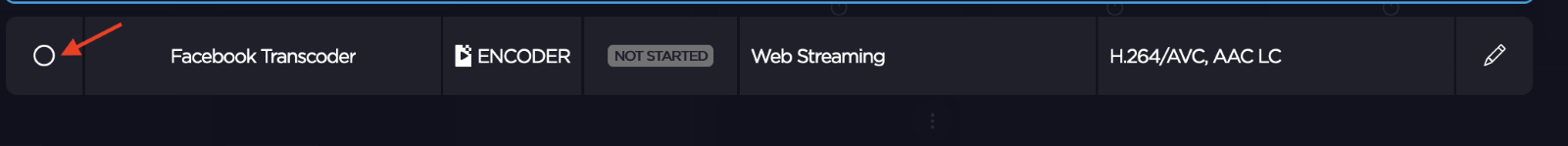 Select the saved Encoder Profile by clicking the associated radio button. An Encoder with the selected Encoder profile is enabled.