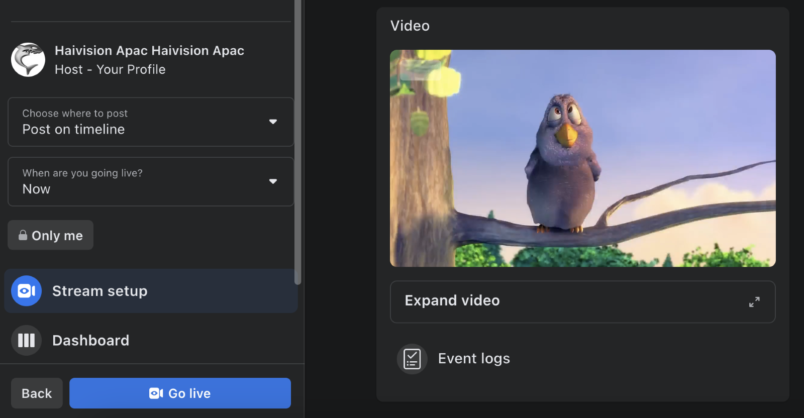 Once satisfied with the incoming feed, click the Go Live button in FaceBook.