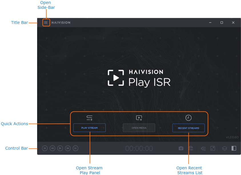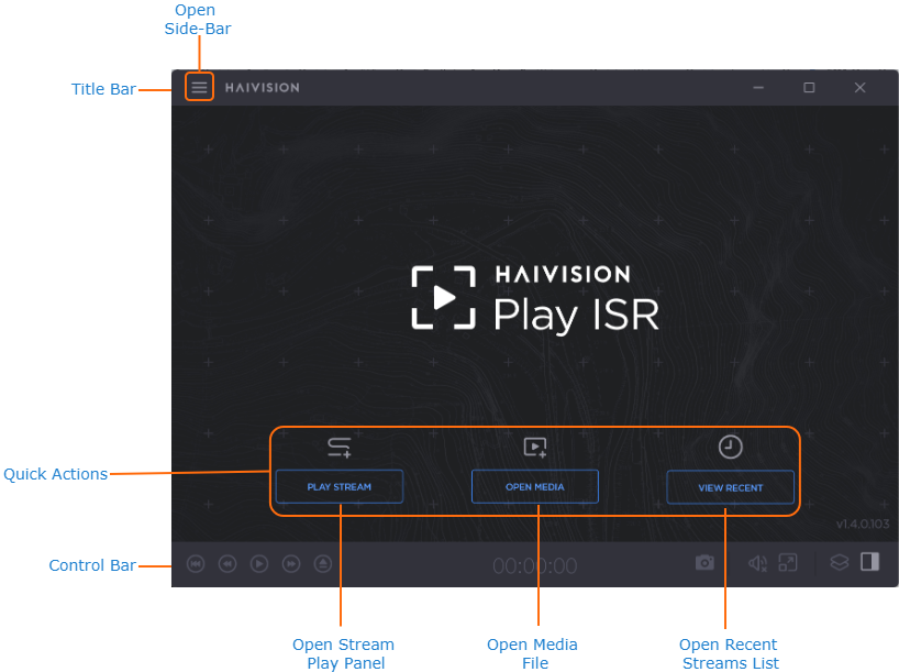Once you have launched the application, you will see the Play ISR Home page. From the Home page, you can use the Quick Action buttons, and access the Side Bar.