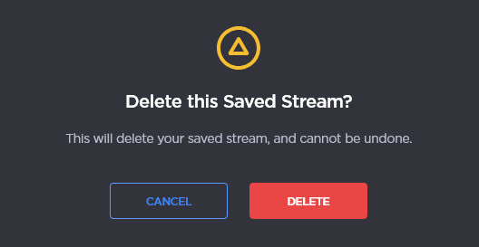A warning will appear to confirm that you would like to delete the stream. To confirm click Delete again.