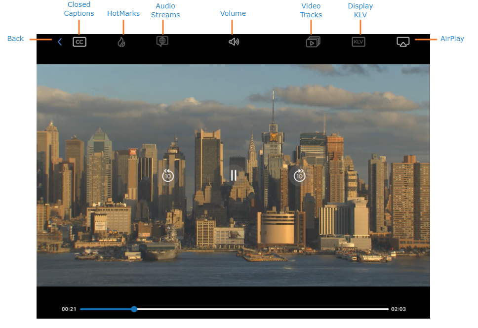 HotMarks — HotMarks are metadata "bookmarks" that can be added in HMP to annotate a video. Select the HotMark icon to jump directly to specific points of interest in the video. For more information on HotMarks, see the HMP user documentation.