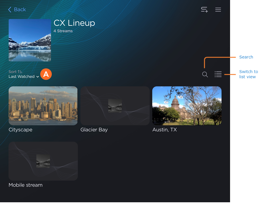 On the Streams screen, tap View All on the Lineup you wish to view.