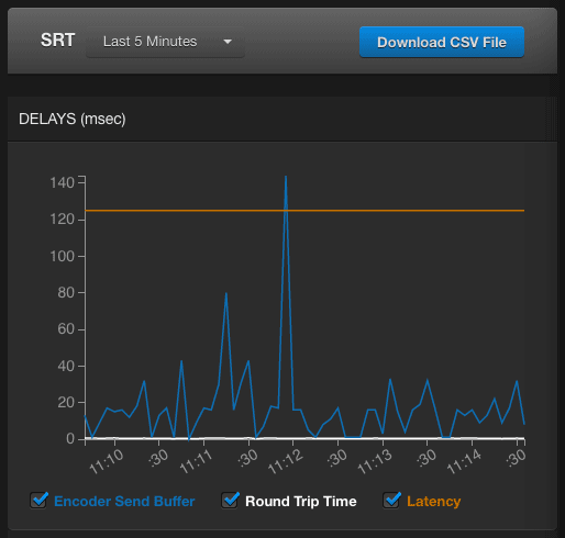 The Delay section provides a graphical overview of how the SRT stream buffers are handling the traffic.