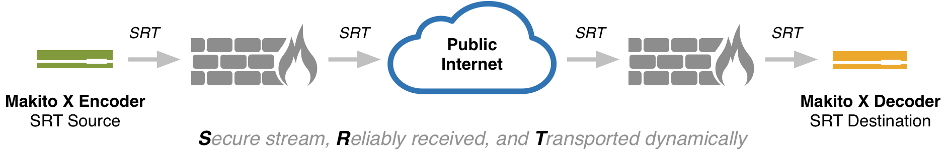 As audio/video packets are streamed from a source to a destination device, SRT detects and adapts to the real-time network conditions between the two endpoints. SRT helps compensate for jitter and bandwidth fluctuations due to congestion over noisy networks, such as the Internet. Its error recovery mechanism minimizes the packet loss typical of Internet connections. And SRT supports AES encryption for end-to-end security, keeping your streams safe from prying eyes.