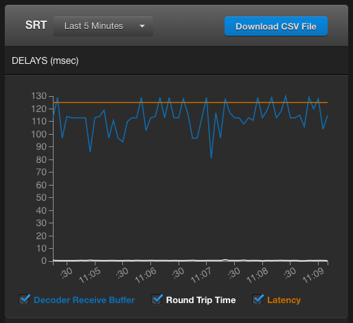 The Delay section provides a graphical overview of how the SRT stream buffers are handling the traffic.