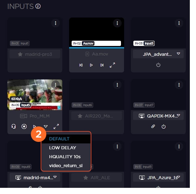 To start a Live transmission using a field unit, you simply have to select a live profile and start the operation.