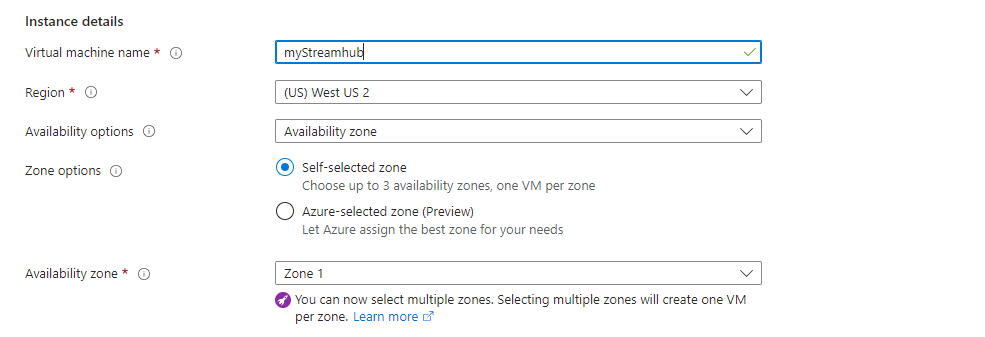 Under Instance details, enter an instance Name, and choose a Region and an Availability zone: