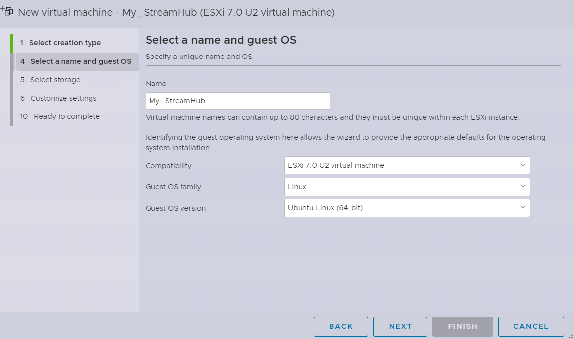 The following steps explain how to configure a virtualized StreamHub over VMware ESXI from an ISO file.