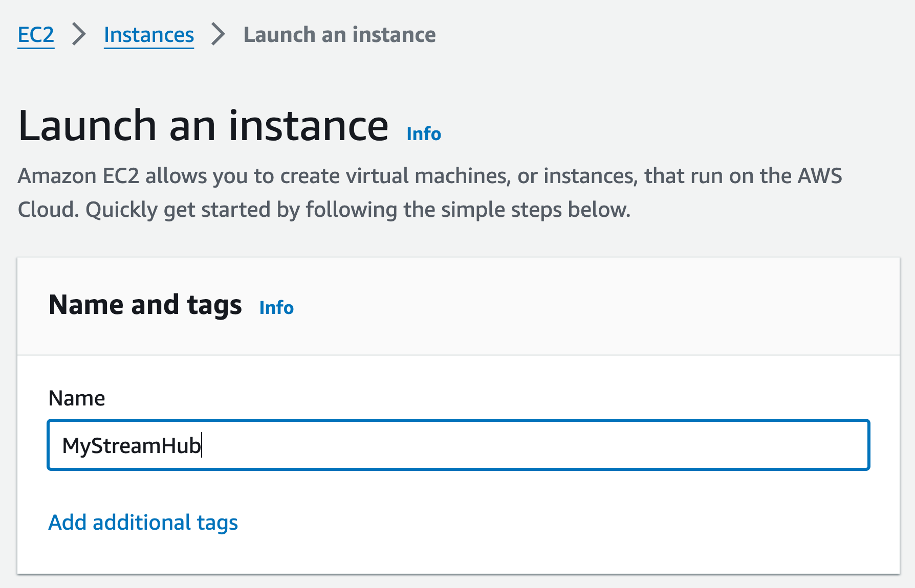 Enter the instance Name and add additional tags if necessary:
