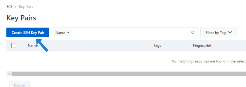 On the ECS Key Pairs page, click Create SSH Key Pair: