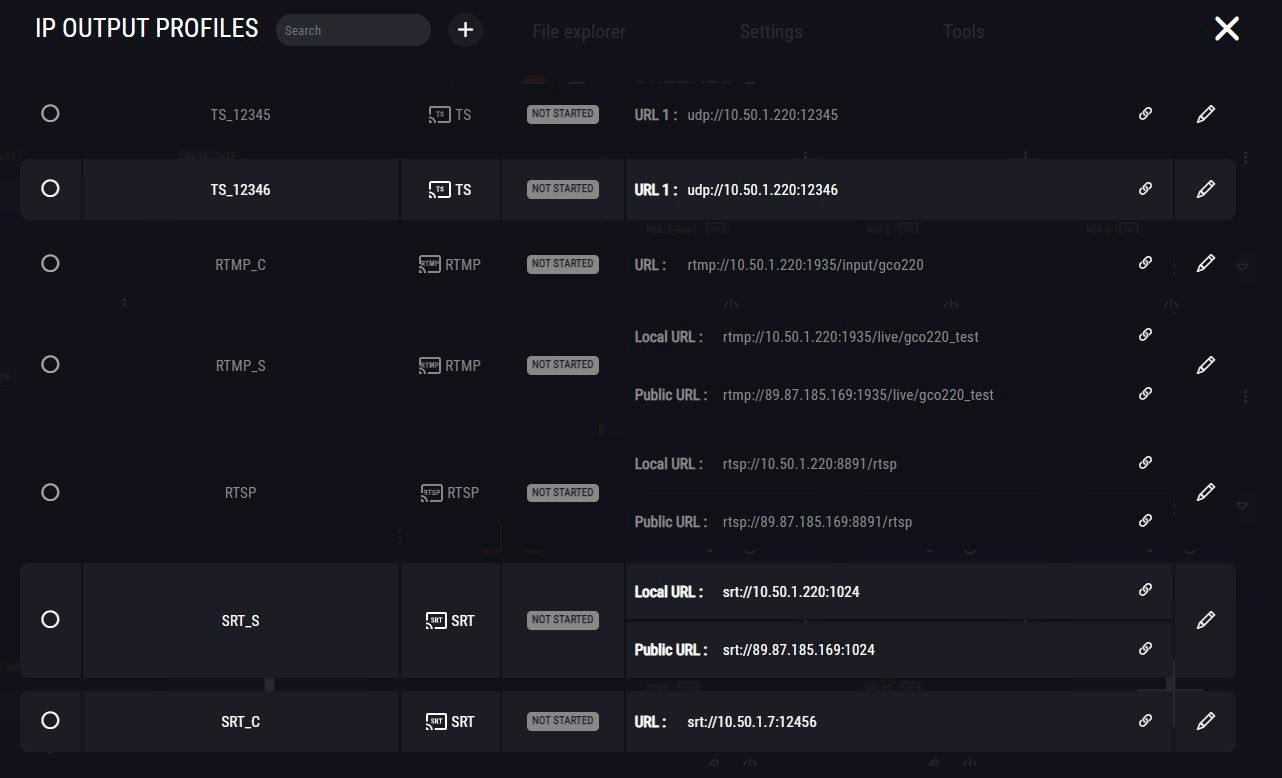 After you created IP Output profiles, you can display them very easily on the dashboard, or decide to hide them.