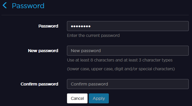To change the web interface password: