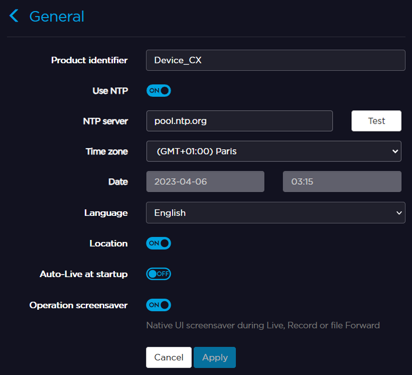 (Optional) Enable the Use NTP toggle and enter an NTP Server address in the field below.