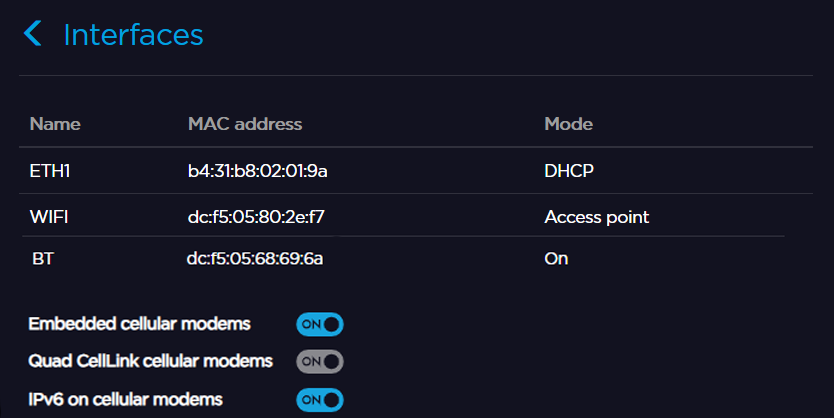 In the QUAD CellLink cellular modems field, press the wheel to enable or disable all modems.
