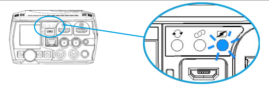 The battery indicator lights up in green when charging. It turns to blue when the unit battery is fully loaded.