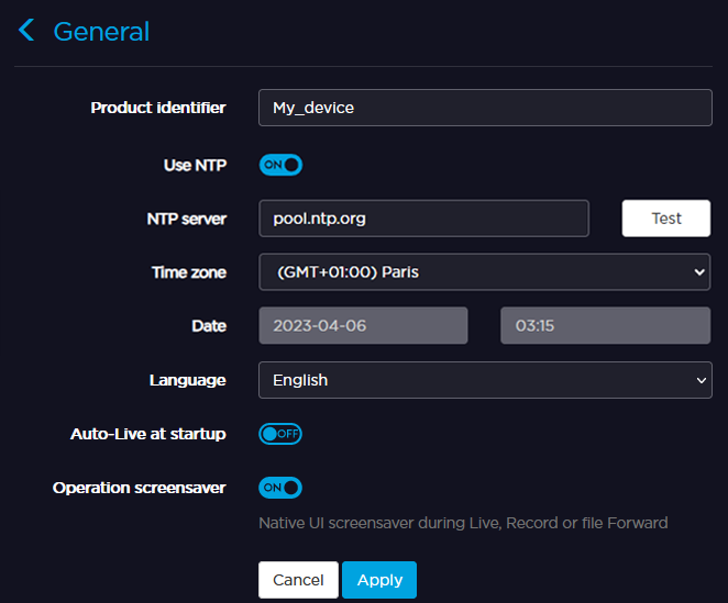 (Optional) Enable the Use NTP toggle and enter an NTP Server address in the field below.