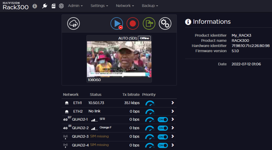 . The screen displays the IP address assigned to the unit (by default in DHCP mode).Launch a web browser on your computer and enter the unit IP address and append "