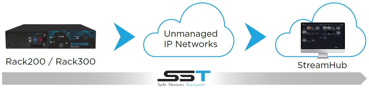 The Rack Series embeds a best-in-class full HD hardware H.265/HEVC encoder, as well as an H.264/AVC encoder to reach low bitrates at sub-second latency without comprising on video quality. Powered by the double award-winning SST technology (Safe Streams Transport), the Rack encoder offers ultra-reliable transmission on any network, thanks to an intelligent IP-bonding stack that aggregates all available bandwith without needing to stop a live transmission, even as connections are added or dropped. It ensures the delivery of video even in the midst of unpredictable and unmanaged network conditions by: