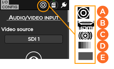 SDI HDMI Color circles pattern Color bars pattern Black pattern