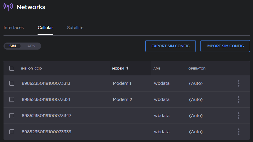 From the Web Interface, click on Networks > Cellular > SIM to have an overview of your SIM Cards. Sort the SIM Cards by clicking on the column heading.