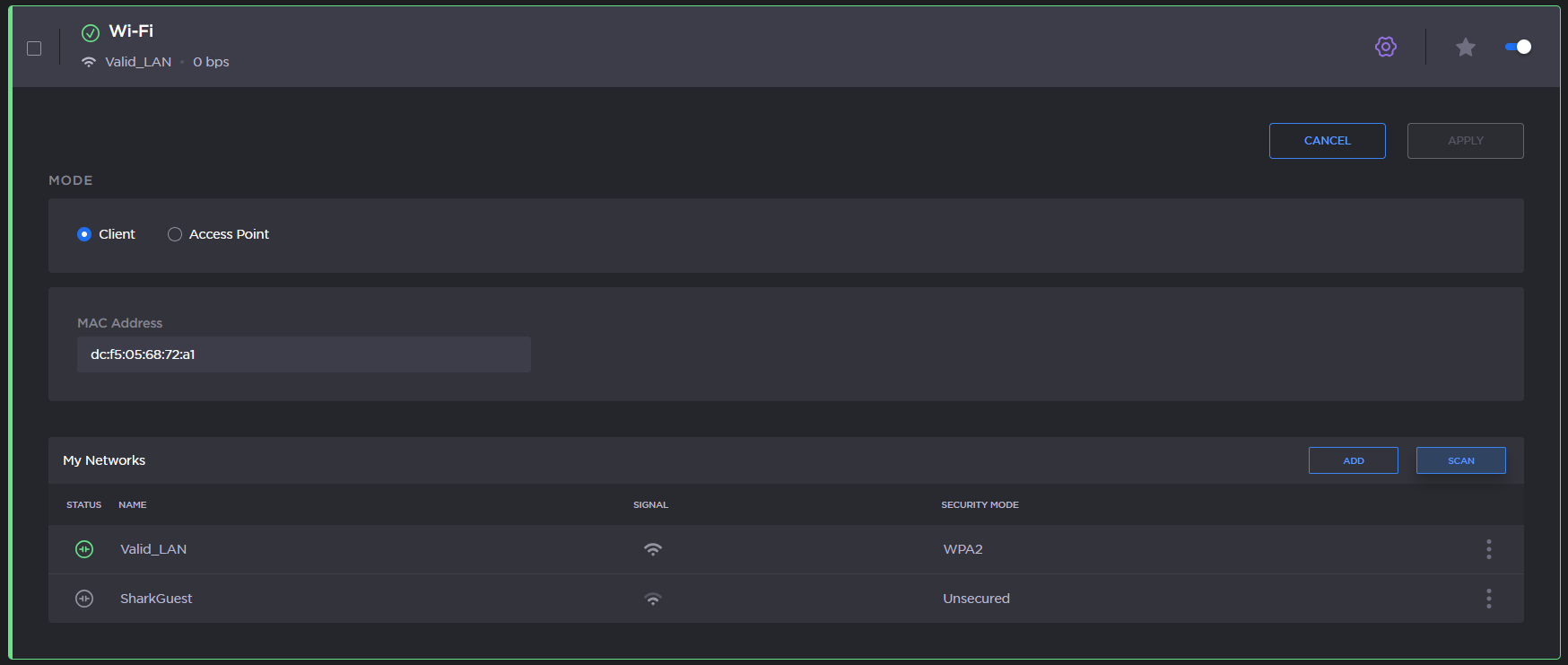 > WiFi > Mode > Client.