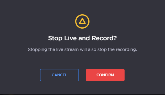 Tap and to start the Live. The video preview appears on screen. Audio Bars indicating Audio Levels Record Indicator Live Indicator Live Duration