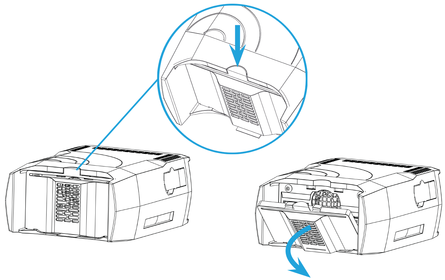 The battery indicator lights up in green when charging. It turns to blue when the unit battery is fully loaded.