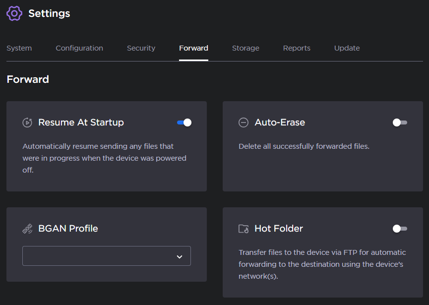 Auto-erase: All successfully forwarded filed are automatically deleted when the forward is complete.