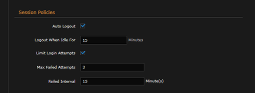 If applicable, modify the Max Failed Attempts and Failed Interval values. See "Policy Settings" in the associated User's Guide.