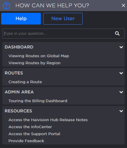 - Resources are links to documentation, instructional videos, and feedback forms.